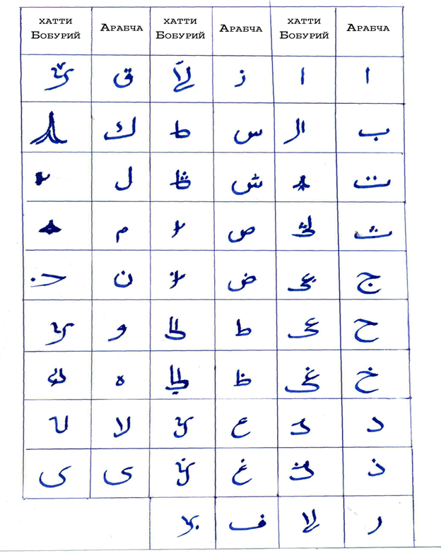Бобурий хати эмасдур хафти сиғноқийдур.