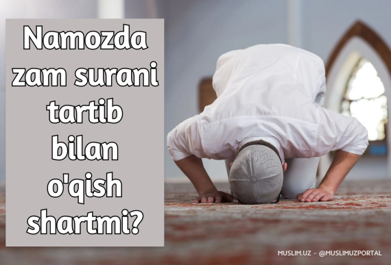 Сураларни тартиби бўйича ўқиш вожиб бўлса ҳам, намоз ўқувчи тартиби билан ўқишни тарк қилиши туфайли унга ҳеч нарса лозим бўлмайди. Чунки сураларни тартиби бўйича ўқиш намоз вожибларидан бўлган аслий вожиб эмас…- Тошкент Ислом институти ўқитувчиси Абдулқодир Абдур Раҳим,