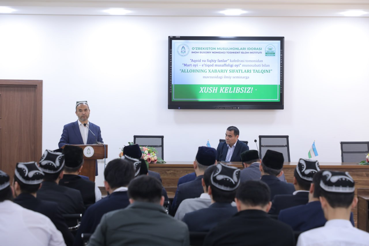 Имом Бухорий номидаги Тошкент ислом институтида “Март – Эътиқод мусаффолиги ойлиги” муносабати билан “Аллоҳнинг хабарий сифатлари талқини” мавзусида илмий суҳбат бўлиб ўтди. Давра суҳбатида Имом Мотуридий халқаро илмий-тадқиқот маркази бўлим бошлиғи, тарих фанлари бўйича фалсафа доктори (Phd) Абдулатиф Аллоқулов, Тошкент ислом институти Илмий ишлар ва фан бўйича проректор Соатмурод Примов, институт ўқитувчилари ҳамда кундузги таълим шакли талабалари иштирок этди. – ТИИ «Ақоид ва фиқҳий фанлар» кафедраси