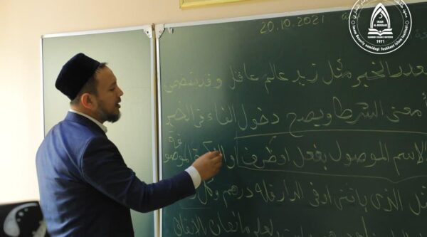 Тиллар фанлар кафедраси ўқитувчиси Ёқубжон Бухарбоев 1-курс талабаларига “Араб тили” фанидан “Мубтадонинг хабари” мавзусида очиқ дарс ўтди.